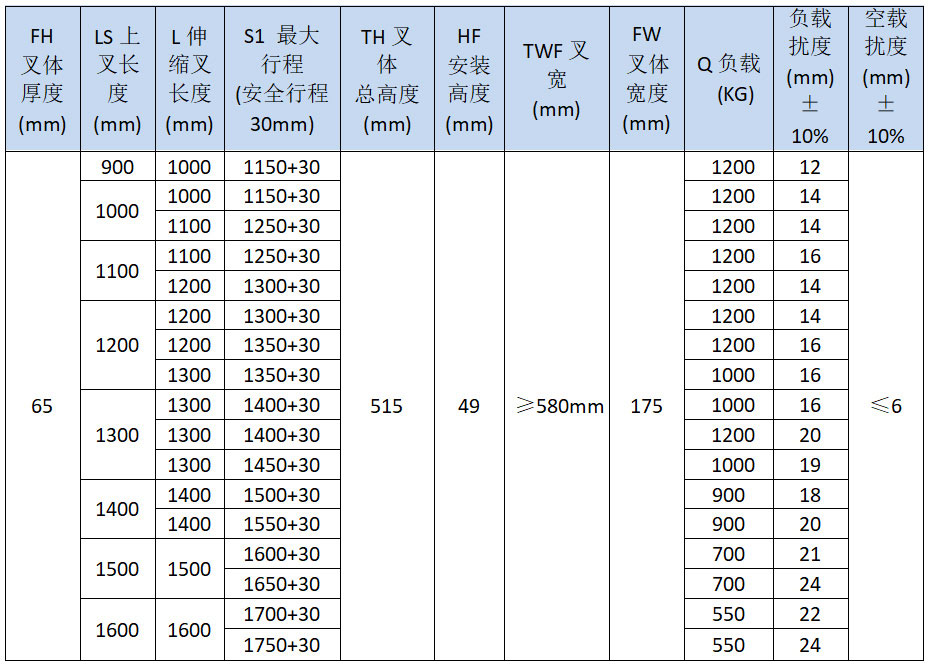 • 技術參數:伸縮叉內部配有機械限位,防止超行程脫出